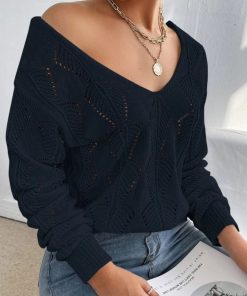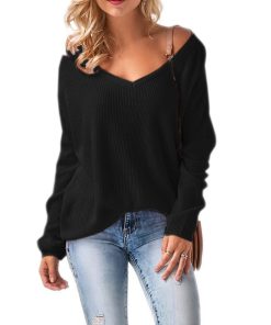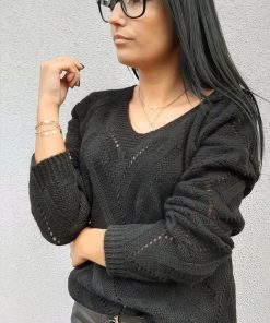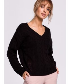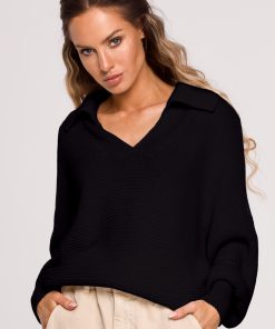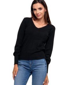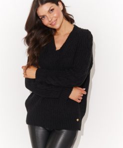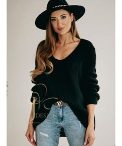 Czarny Sweter W Serek