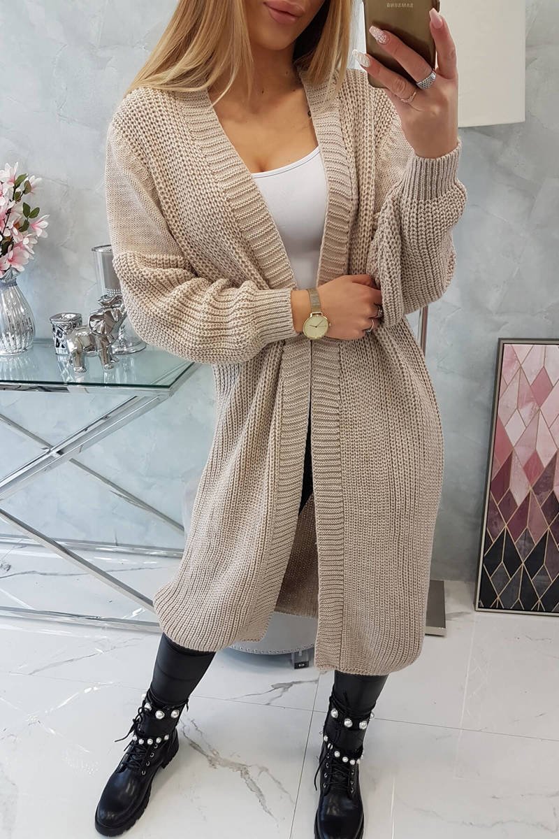 długi beżowy kardigan